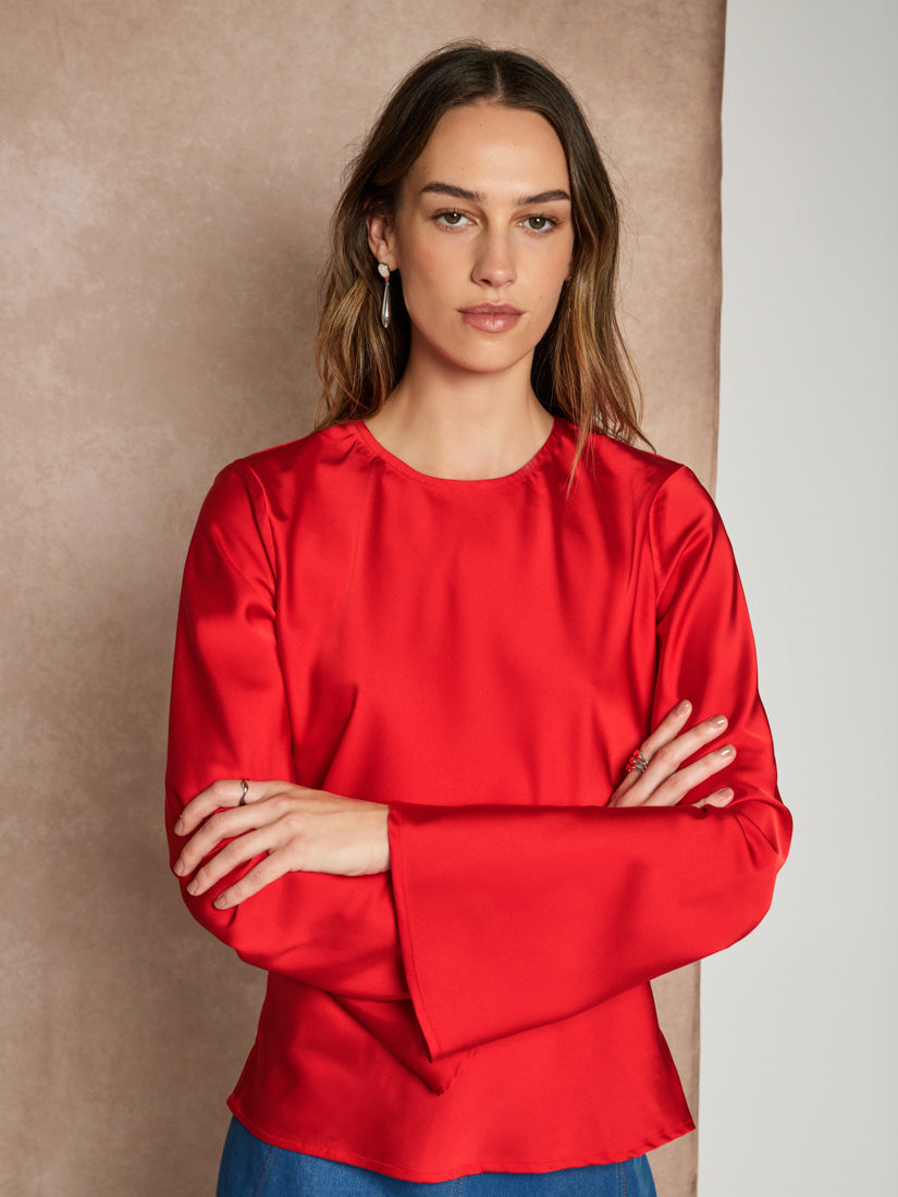 Fluid and dramatic, the Beatriz Top’s satin drape creates a quiet sense of movement. The open back wrap detail introduces an unexpected softness, balanced by a clean, minimal front. It’s an easy way to bring modern sensuality into daytime or evening looks.