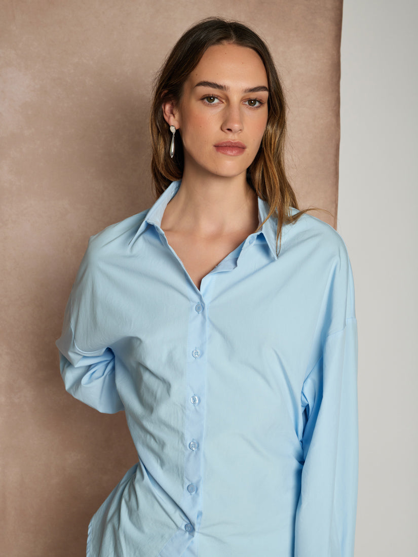 The Enya Shirt takes a classic button down and reshapes it through a new lens. Waist ruching and an adjustable tie create a cinched, sculptural silhouette without losing its laid back feel. It’s the perfect balance between structured cool and everyday ease.