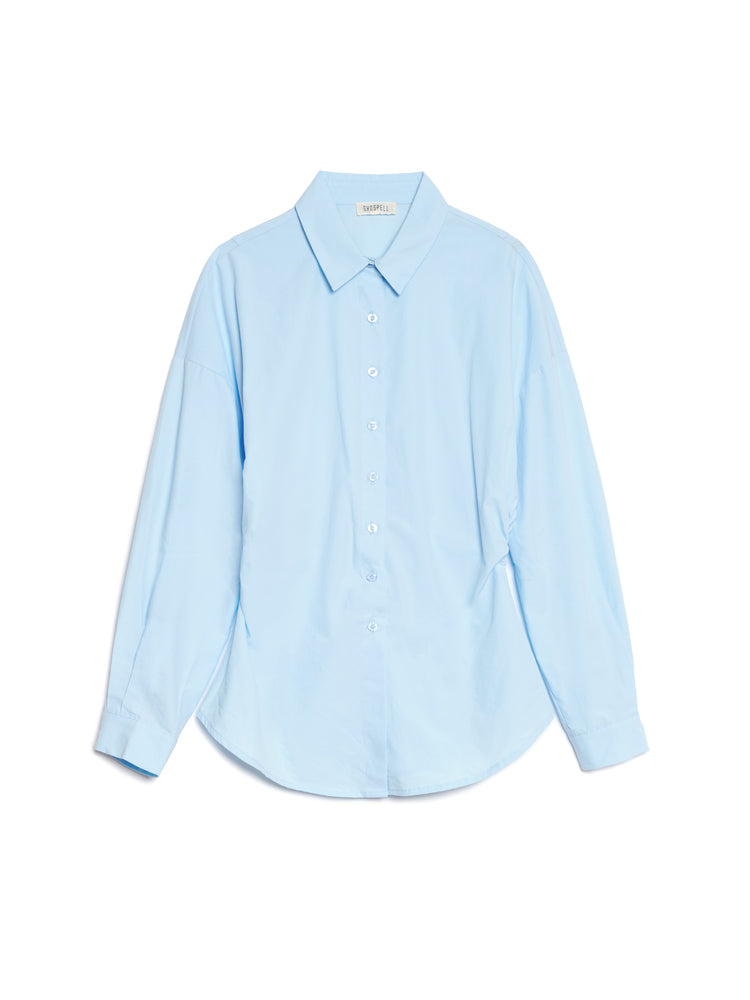 Shirt in a soft cotton feel fabric. Featuring an adjustable back tie and waist ruching. Fastened with shirt buttons.